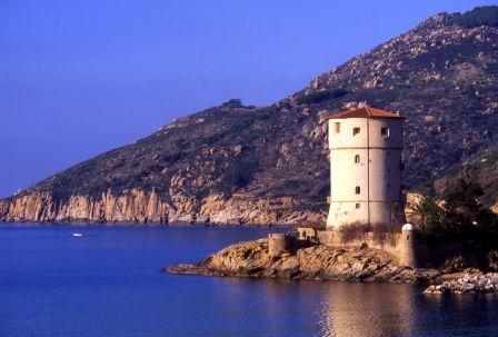 Caratterizzata dal colore rossastro della sabbia è la spiaggia più grande dell'isola. Situata sul lato nord-ovest, è delimitata dal suggestivo faraglione sulla punta sud, e dalla torre medicea sulla punta nord. Raggiungibile in autobus e con i servizi taxi-boat.