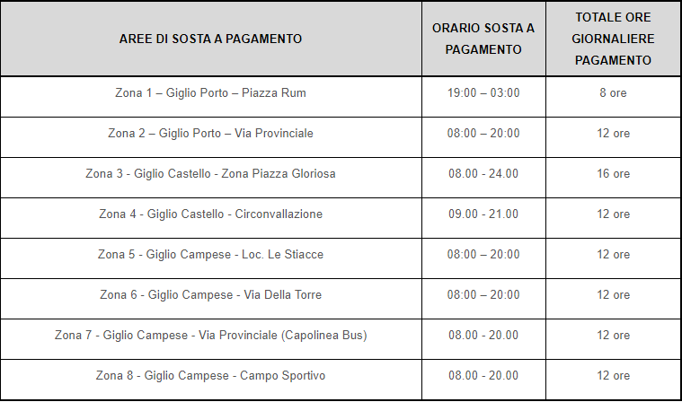 Si comunica che dal giorno Giovedì 29 Giugno 2023 con orario 10:00 - 12:00, presso l'info point di Giglio Campese situato nei pressi del capolinea Bus, sarà possibile richiedere il rilascio degli abbonamenti relativi alla sosta all'interno delle aree adibite a parcheggio a pagamento.